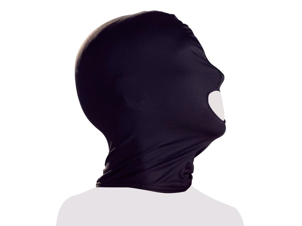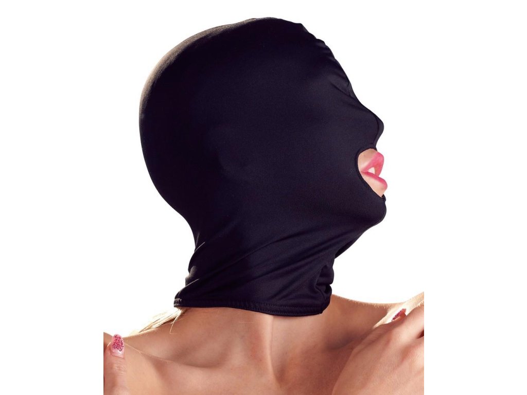 Černá přiléhavá maska na hlavu z elastického materiálu. Ústa jsou volná. Materiál: 95 % polyester, 5 % spandex.